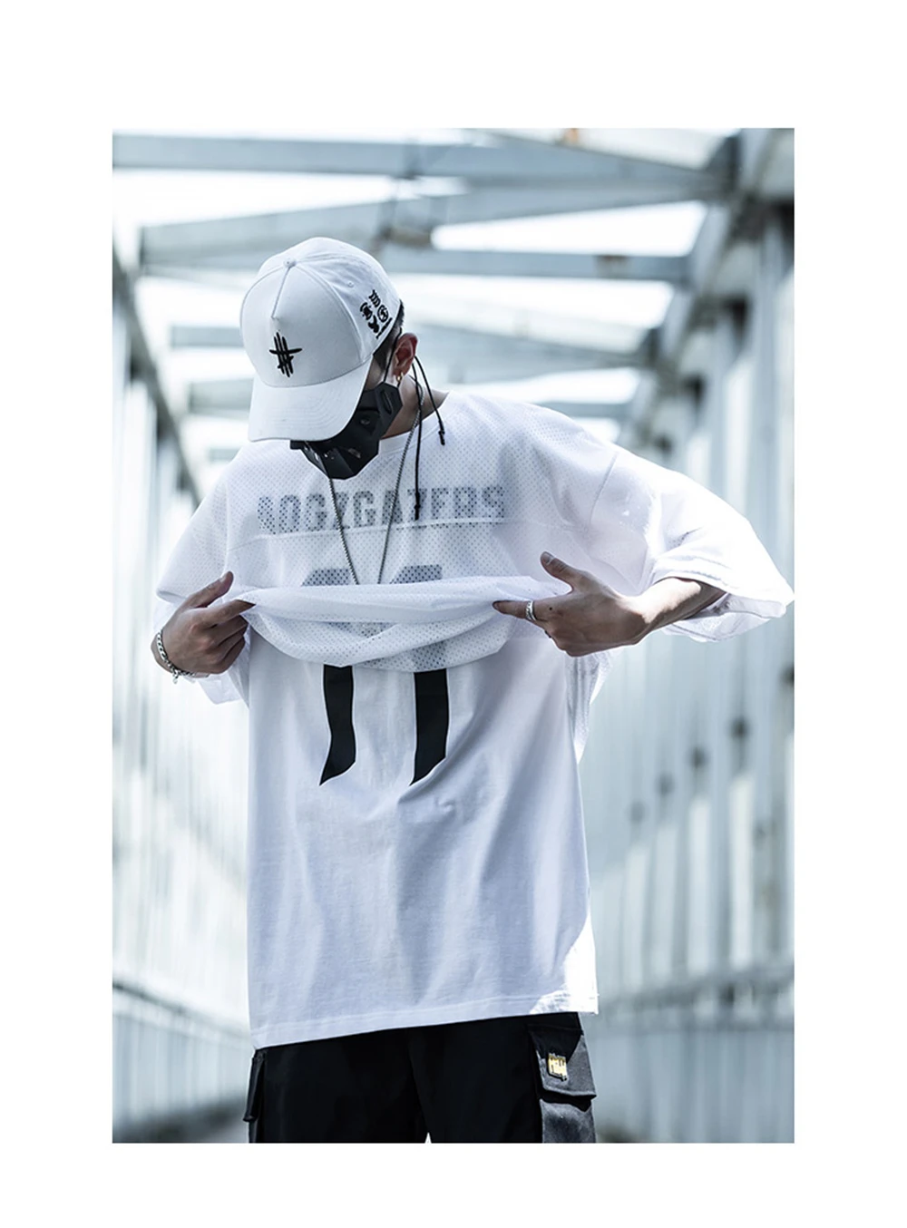 2025 Men Hip Hop T-Shirt Streetwear Fake two Pieces Sports T Shirt 11 Printed Tshirt Harajuku Loose Tops Tees