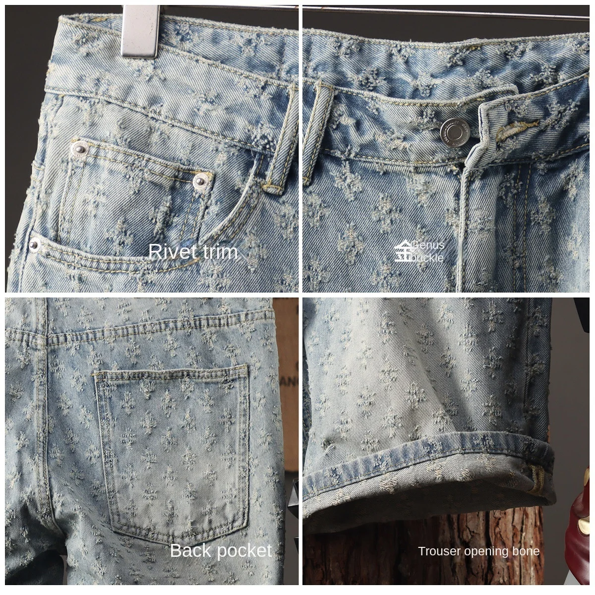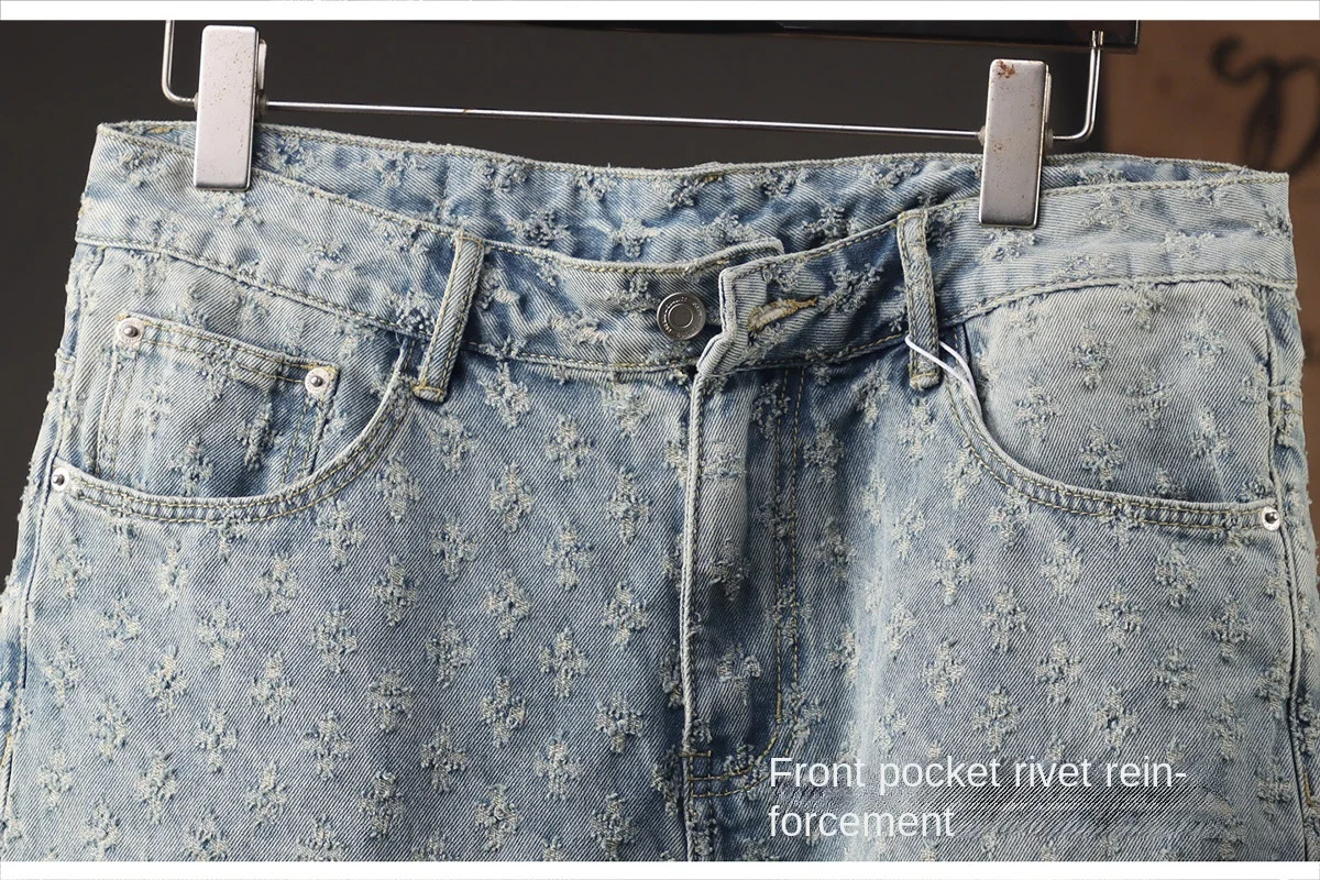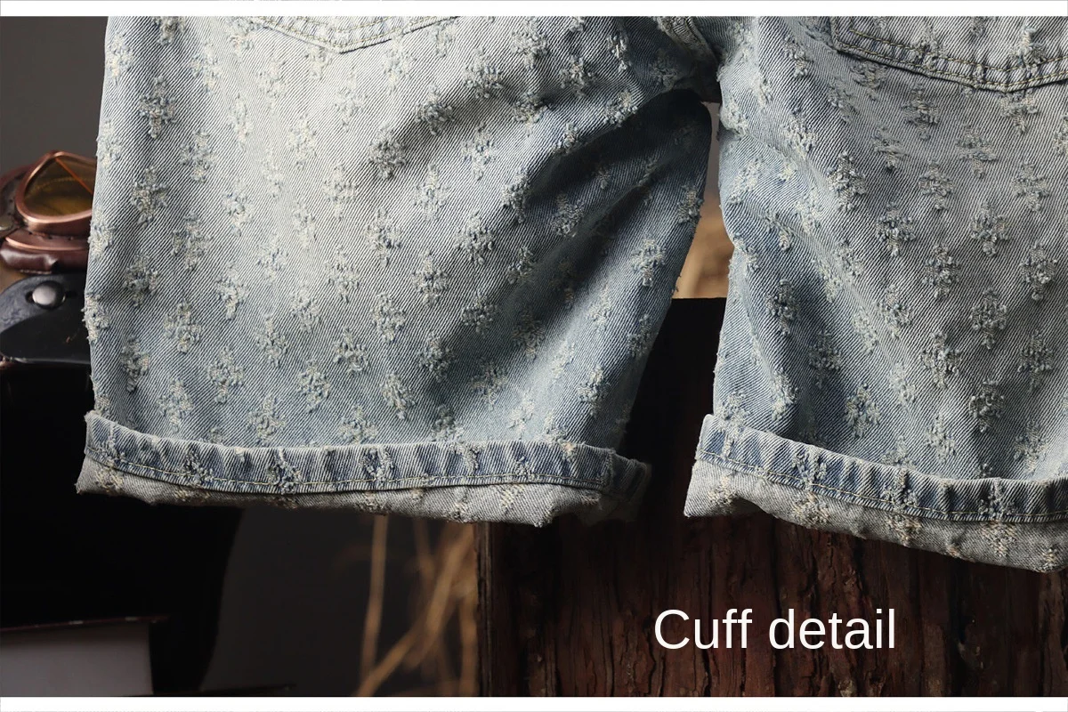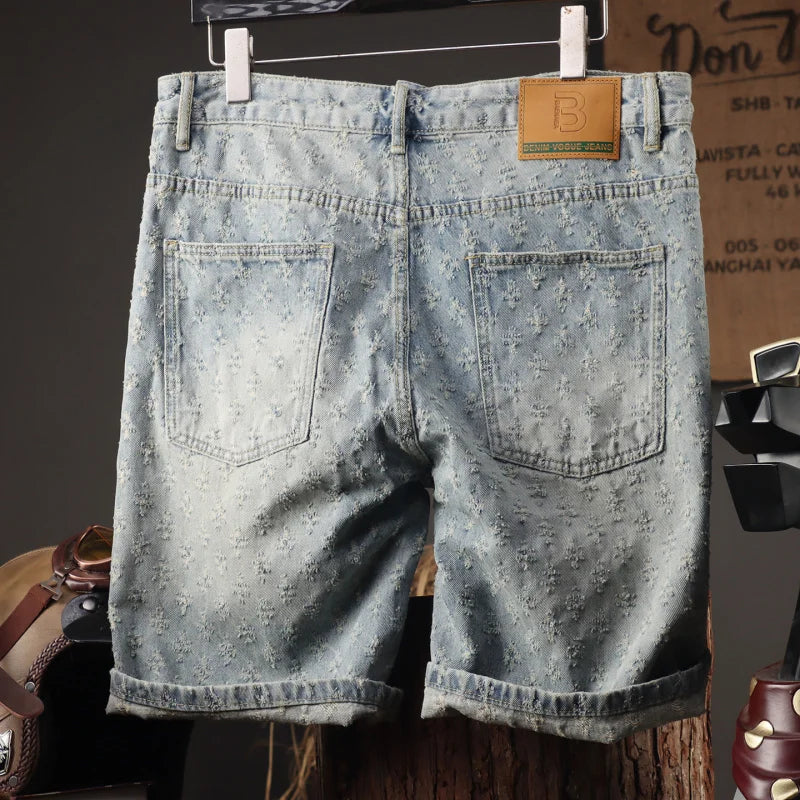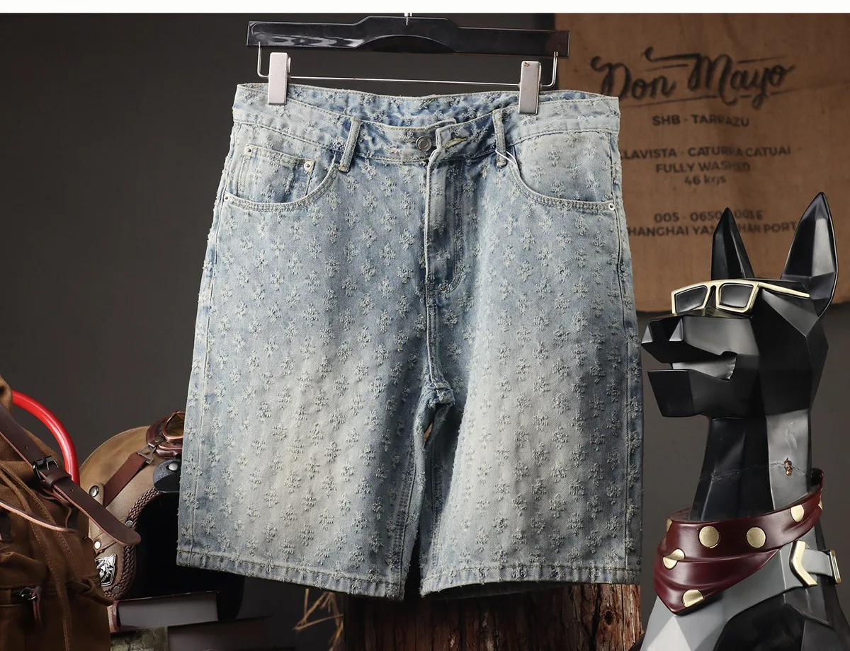 2025 New Men's Clothing Retro Jacquard Cowboy Shorts Men's Rascal Handsome Summer Thin Loose Pentagram Pants