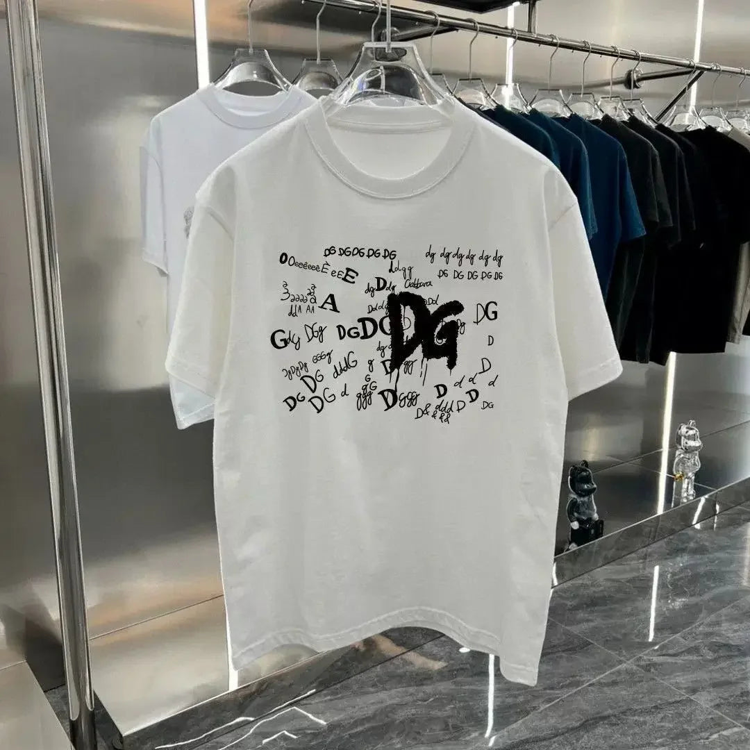 2025 Summer New Product Men's Letter Printing Tide Brand Pure Cotton Round Neck Short Sleeve T-shirt Men's Short Sleeve