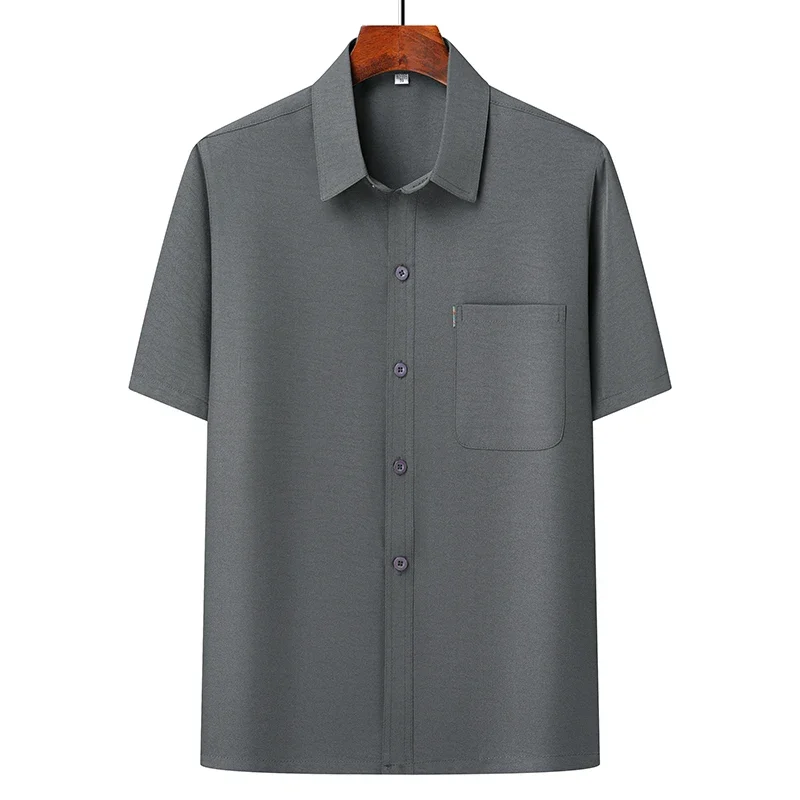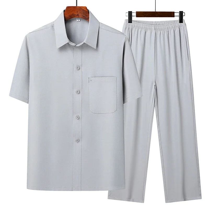(Top + Pants) Summer Leisure All Match Middle-aged and Old Dad Men Fashion Trend Grandpa Loose Lapel Half-sleeve Shirt Set